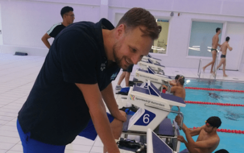 Nee, ik heb bewust gekozen om eerst een aantal jaren echt mijn eigen studie te doen en mijn eigen stijl als trainer te ontwikkelen. Pas na een jaar of vier heb ik ook bij de KNZB de opleiding gedaan. Dat moet natuurlijk ook wel wanneer je in Nederland op hoog niveau als trainer aan de slag wilt gaan. En die ambitie had ik en heb ik nog steeds. Ik wilde trainer van TeamNL worden en maak hier nu ook onderdeel van uit.